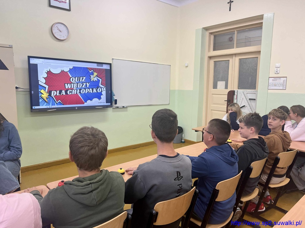 30 września klasa 7a obchodziła Dzień Chłopaka. Tego dnia lekcja wychowawcza była wyjątkowa, gdyż w całości została poświęcona chłopakom z okazji ich święta. Na początek nasi panowie zmierzyli się w quizie wiedzy pełnym emocji i rywalizacji. Kolejnym wyzwaniem był quiz o klasie i… samych sobie. Wyszło znakomicie!