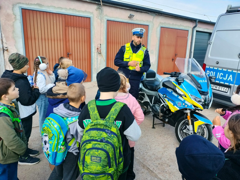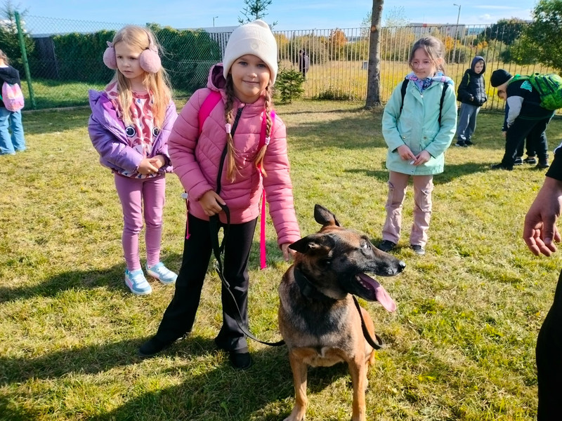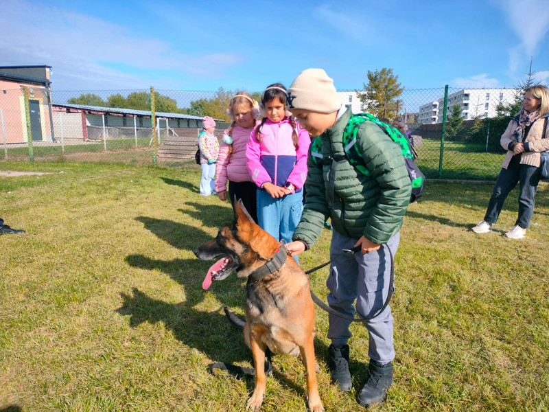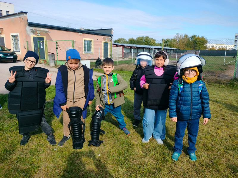 Gdy tylko dotarliśmy na miejsce, już sam budynek Komendy Miejskiej Policji zrobił na nas ogromne wrażenie. Zostaliśmy oprowadzeni po różnych wydziałach, jednak wydział śledczy zaciekawił nas najbardziej. Dowiedzieliśmy się, jak wykrywa się ślady przestępstw. Podczas pobytu zajrzeliśmy do niebieskiego pokoju przesłuchań dzieci i na strzelnicę, gdzie mogliśmy obserwować policjantów podczas ćwiczeń. Na zakończenie wzięliśmy udział w pokazie psów służbowych, radiowozów i motocykli policyjnych. Wyjście dostarczyło mnóstwo emocji. Dziękujemy za zaproszenie!