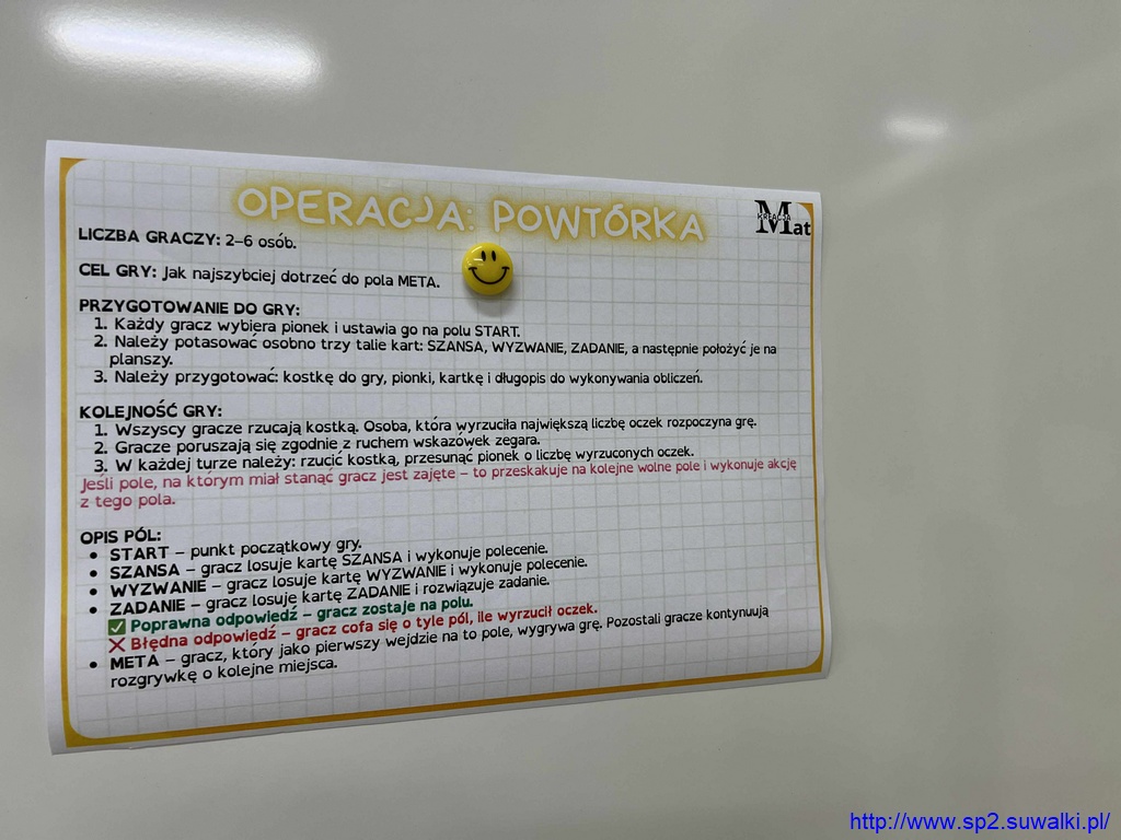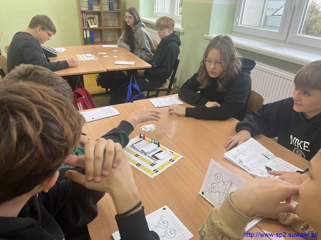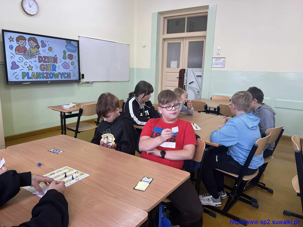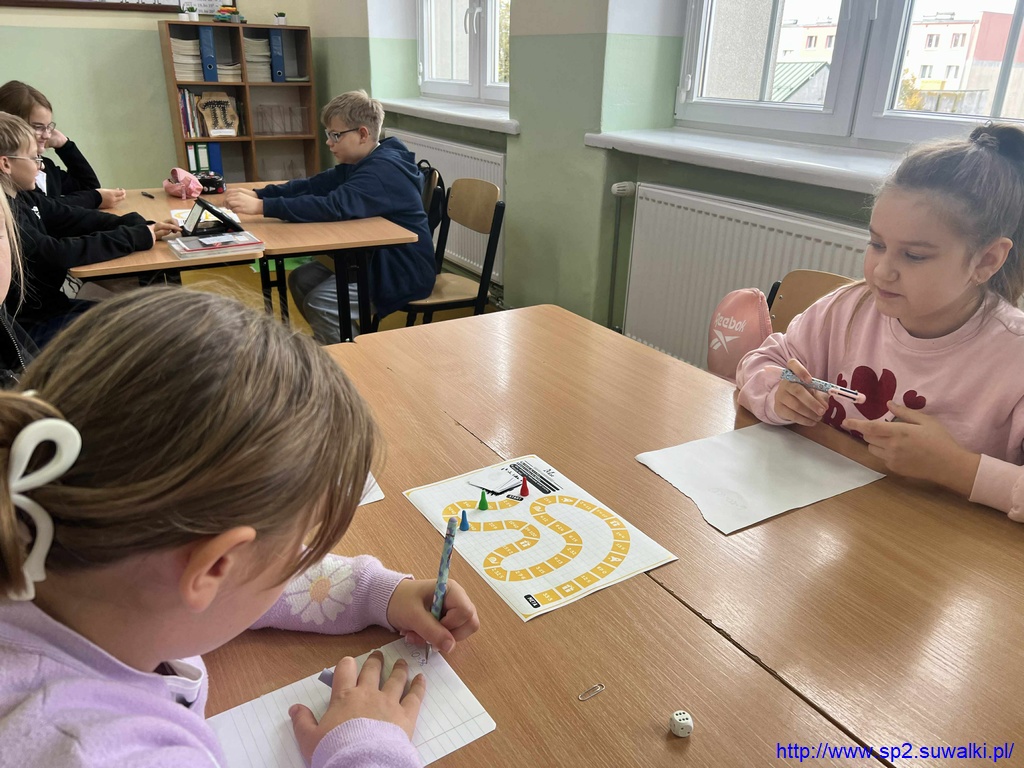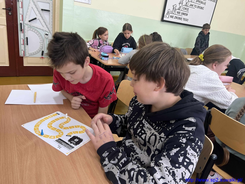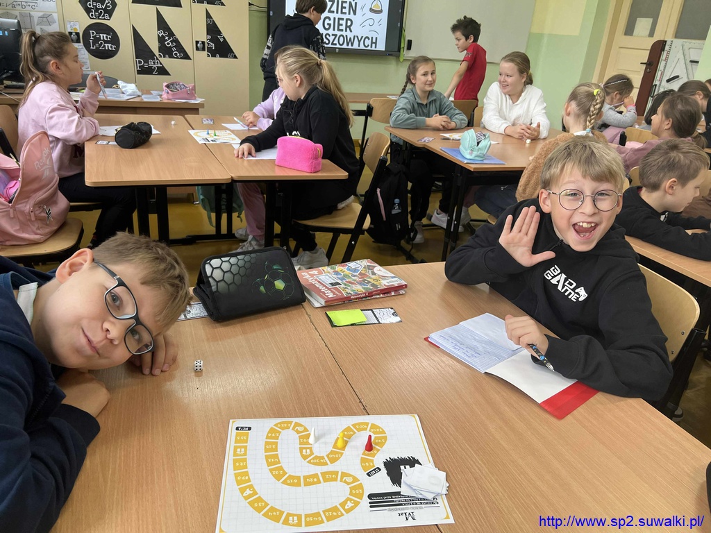10 października w klasach 4b, 6d, 7a i 8c obchodzono Dzień Gier Planszowych, podczas którego uczniowie pracowali z autorskimi grami matematycznymi swojej nauczycielki – pani Anity Wasilewskiej. Zajęcia połączyły naukę z elementami zabawy i współpracy, a jednocześnie pozwoliły utrwalić ważne wiadomości z różnych działów matematyki.