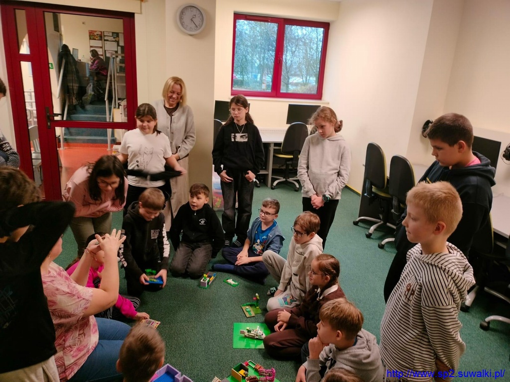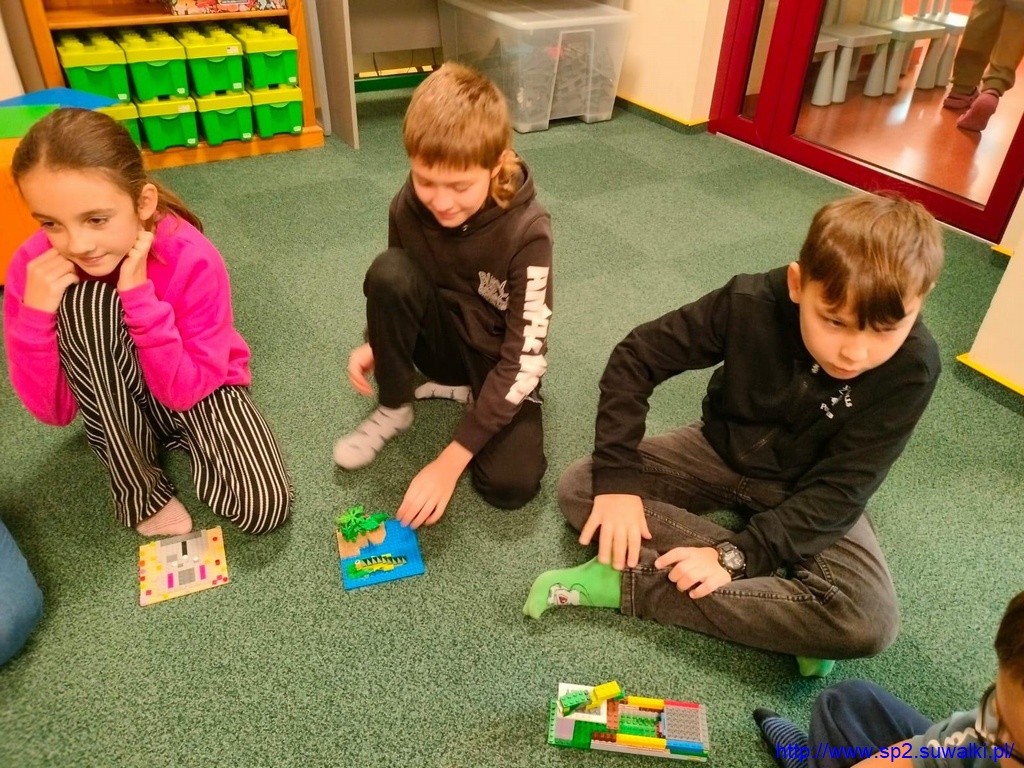 Na miejscu uczniowie pracowali w zespołach. Jedna grupa udała się na zajęcia z robotyki Lego. Dzieci wykonały krokodyla, który po podłączeniu otwierał i zamykał paszczę. Tu trzeba było dokładnie robić krok po kroku to, co było w instruktażu. Wszystkim się udało!