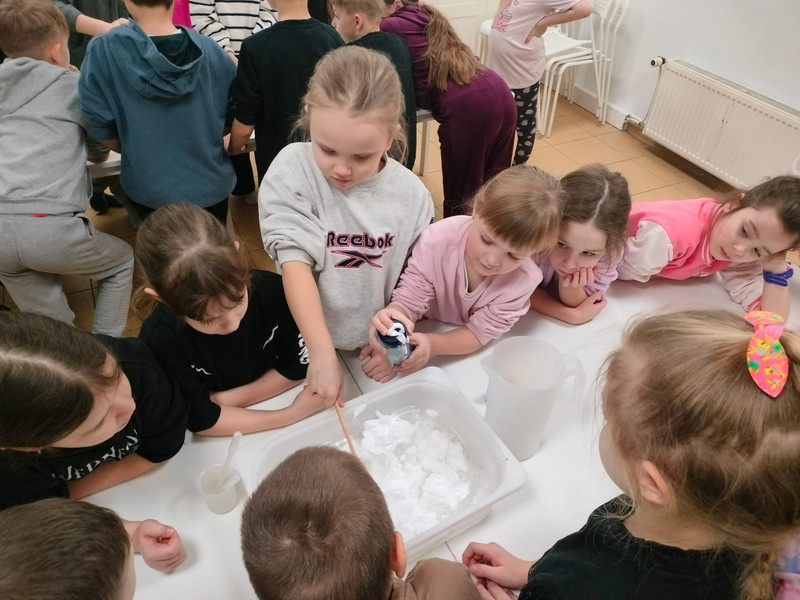 Zajęcia łączyły naukę z zabawą, sprzyjając integracji oraz spędzaniu czasu wolnego. Podczas półkolonii uczniowie brali udział w warsztatach plastycznych (aniołki z nici, giga slime, kolorowe kubki), zajęciach sportowych (Movement Arena, studio tańca, zajęcia na szarfach), grach zespołowych oraz wycieczkach. Półkolonie przebiegły w miłej i bezpiecznej atmosferze, a dzieci wróciły do domów z uśmiechami na twarzach i pięknymi wspomnieniami.