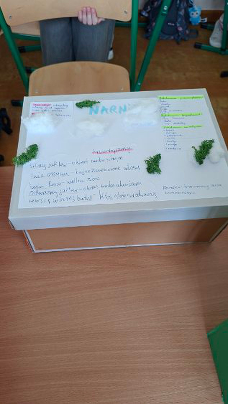 Zadaniem każdej grupy było wykonanie pudełka zawierającego dziesięć przedmiotów kojarzących się z fabułą książki. Uczniowie starannie dobierali symbole nawiązujące do wydarzeń, bohaterów oraz magicznego świata Narnii. W pudełkach znalazły się również informacje dotyczące świata przedstawionego w lekturze, takie jak czas i miejsce akcji, rodzaj narracji oraz bohaterów – głównych, drugoplanowych i epizodycznych.