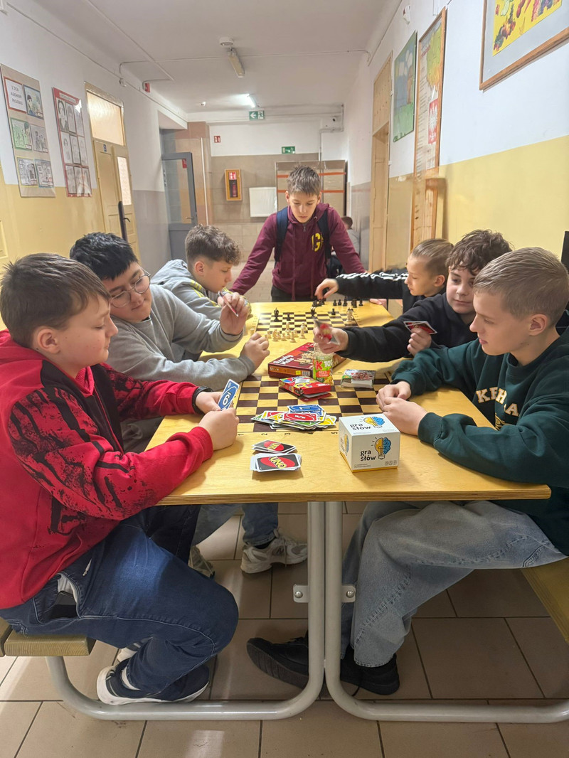 18 marca w naszej szkole świętowaliśmy Europejski Dzień Mózgu pod hasłem „Uspokój swój mózg – dzień bez telefonu i nie tylko…”. Był to dzień inny niż zwykle – pełen wyzwań, ciekawostek i inspirujących aktywności, a przede wszystkim… bez telefonów.Uczniowie chętnie zaangażowali się w przygotowane atrakcje. Na korytarzach powstały specjalne strefy, w których można było zmierzyć się z łamigłówkami, rebusami oraz grami planszowymi i karcianymi. Nie brakowało dobrej zabawy, ale też okazji do rozwijania logicznego myślenia i współpracy.