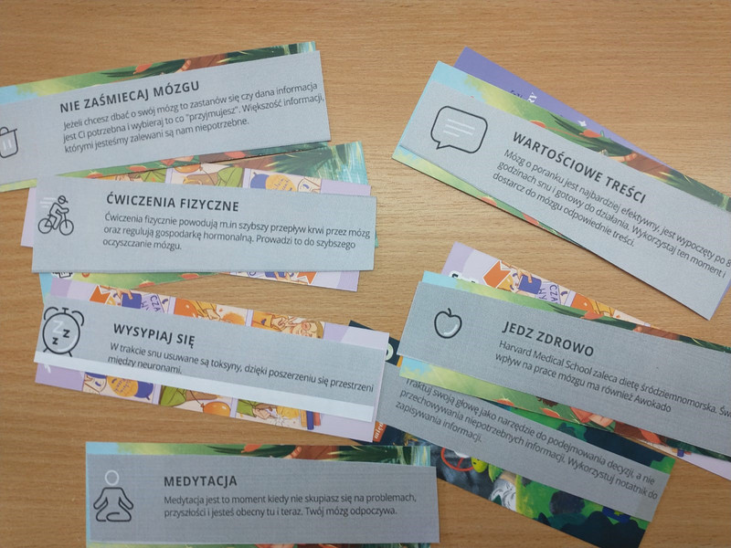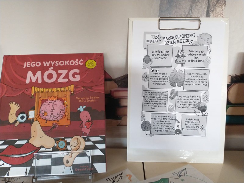W bibliotece szkolnej przygotowano tematyczną wystawę książek, która zachęcała do zgłębiania wiedzy o naszym mózgu, a każdy, kto tego dnia przyszedł do biblioteki, otrzymał zakładkę z dobrą radą dotyczącą higieny umysłu.