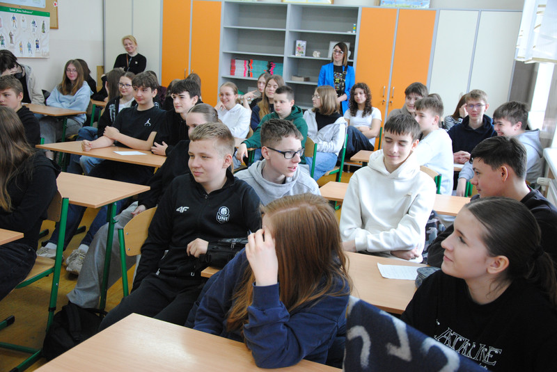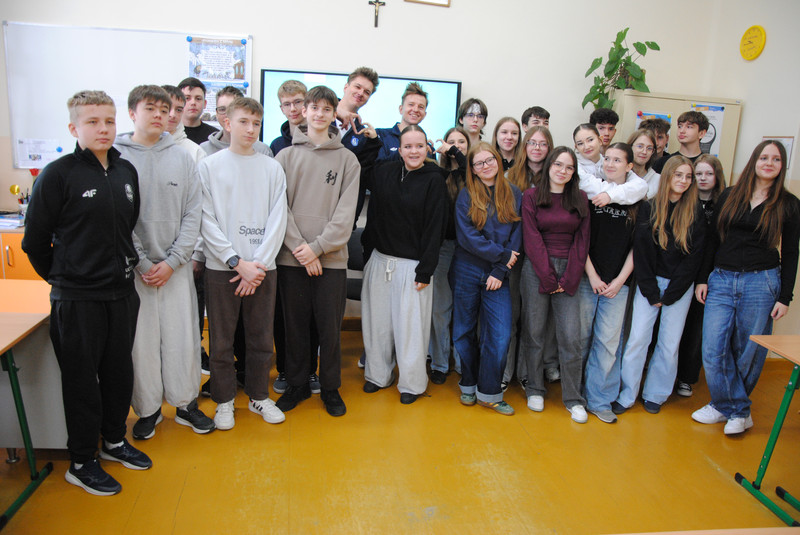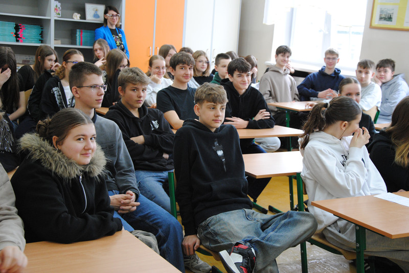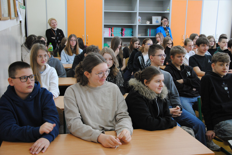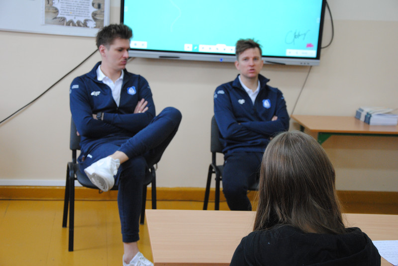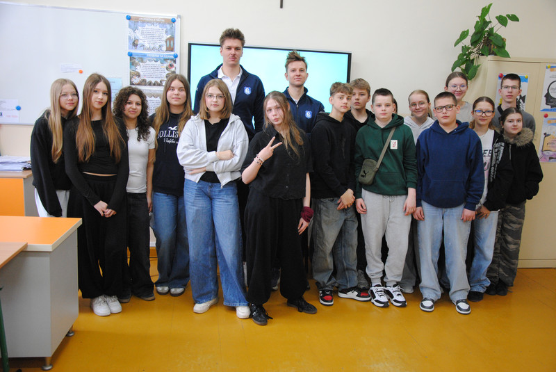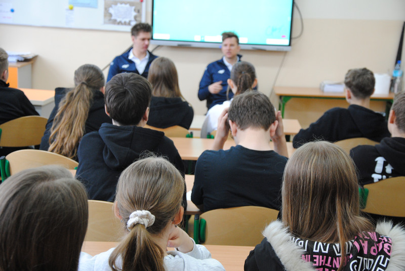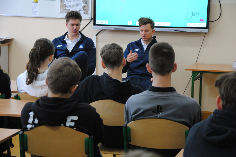 Uczniowie klas dwujęzycznych 7a i 8a wzięli udział w spotkaniu z zawodnikami suwalskiej drużyny Ślepsk Malow Suwałki. Spotkanie odbyło się w języku angielskim. Zawodnicy opowiedzieli uczniom o tym, jak osiągnąć sukces. Uczniowie zadawali wiele pytań dotyczących gry zespołowej, funkcjonowania w drużynie oraz dbania o zdrowie.