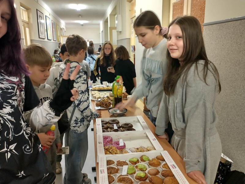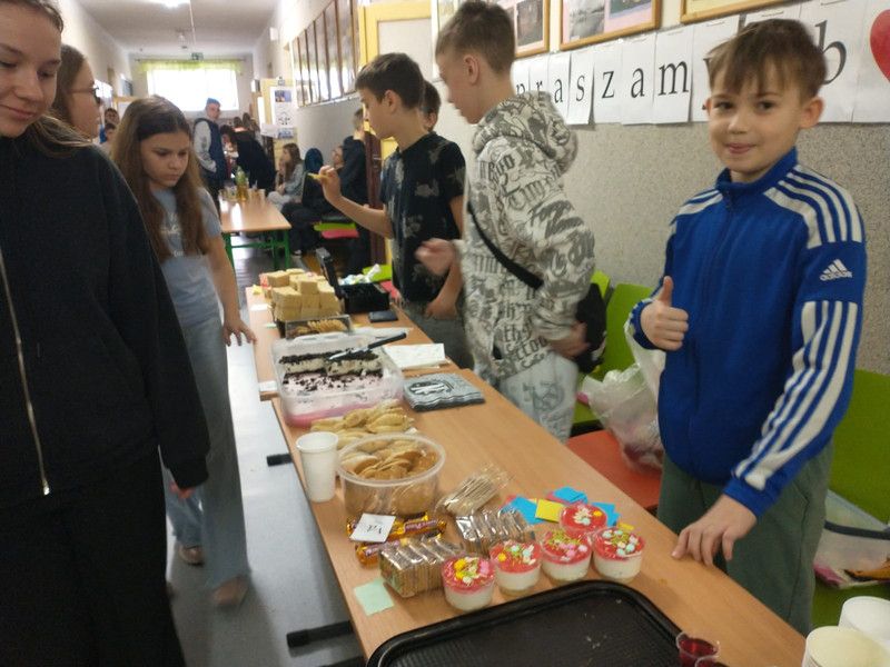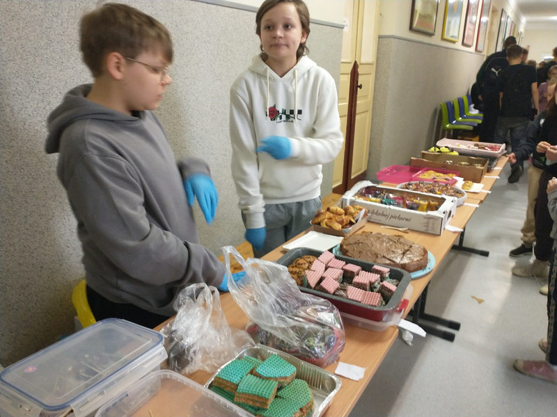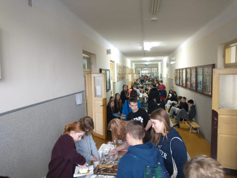 W godzinach 8.00–10.00 na szkolnych korytarzach odbywał się kiermasz na rzecz uczniów naszej szkoły oraz z okazji Liczby Pi. Nauczycielki matematyki doceniły innowacyjne i kreatywne wypieki inspirowane liczbą π.