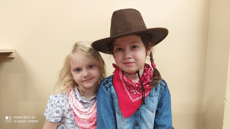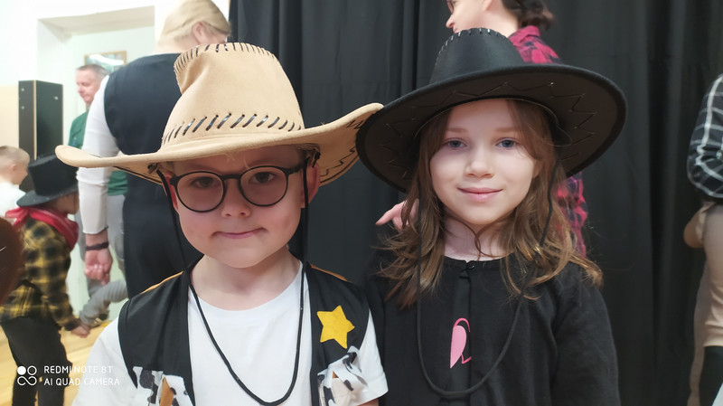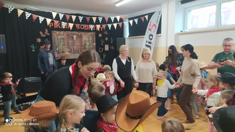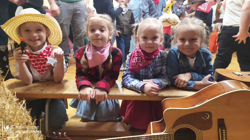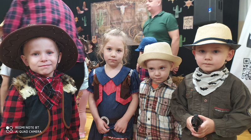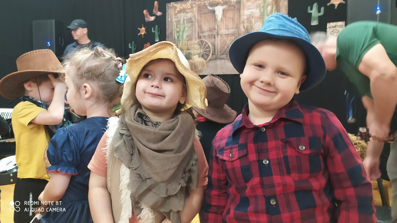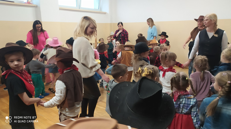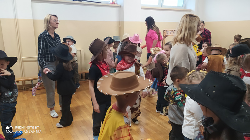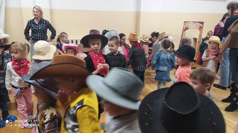 Przy dźwiękach skocznej muzyki przedszkolaki prezentowałyswoje kowbojskie stylizacje. Emocji i wrażeń było co niemiara!