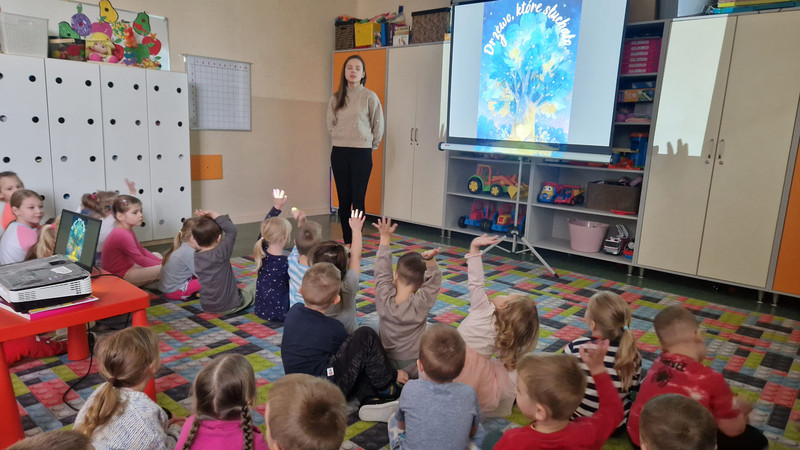Z tej okazji w naszym przedszkolu zorganizowaliśmy specjalną aktywność opartą na niezwykłej, ciepłej opowieści terapeutycznej pt. „Drzewo, które słuchało”.