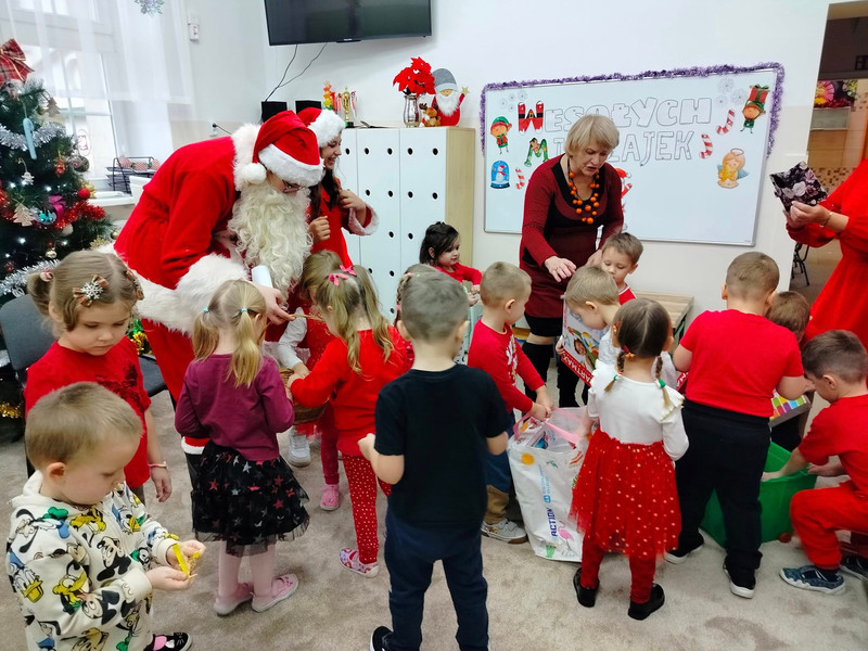 6 grudnia nasze Przedszkole odwiedził wyjątkowy gość - Mikołaj. Już od rana wszystkie dzieci z wielką niecierpliwością spoglądały na drzwi i nasłuchiwały mikołajowych dzwoneczków. Mikołaj nie zawiódł dzieci i pojawił się w towarzystwie Pana Prezydenta Romana Rynkowskiego. Przedszkolaki zaśpiewały świąteczne piosenki, a pod choinką znalazły wspaniałe prezenty.