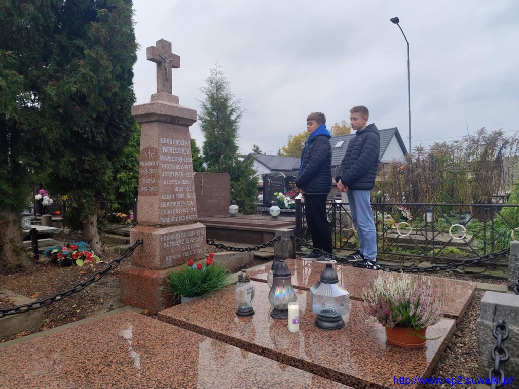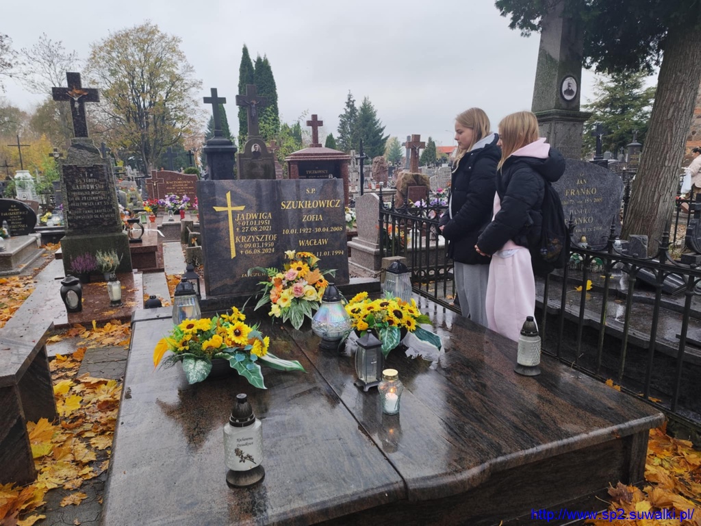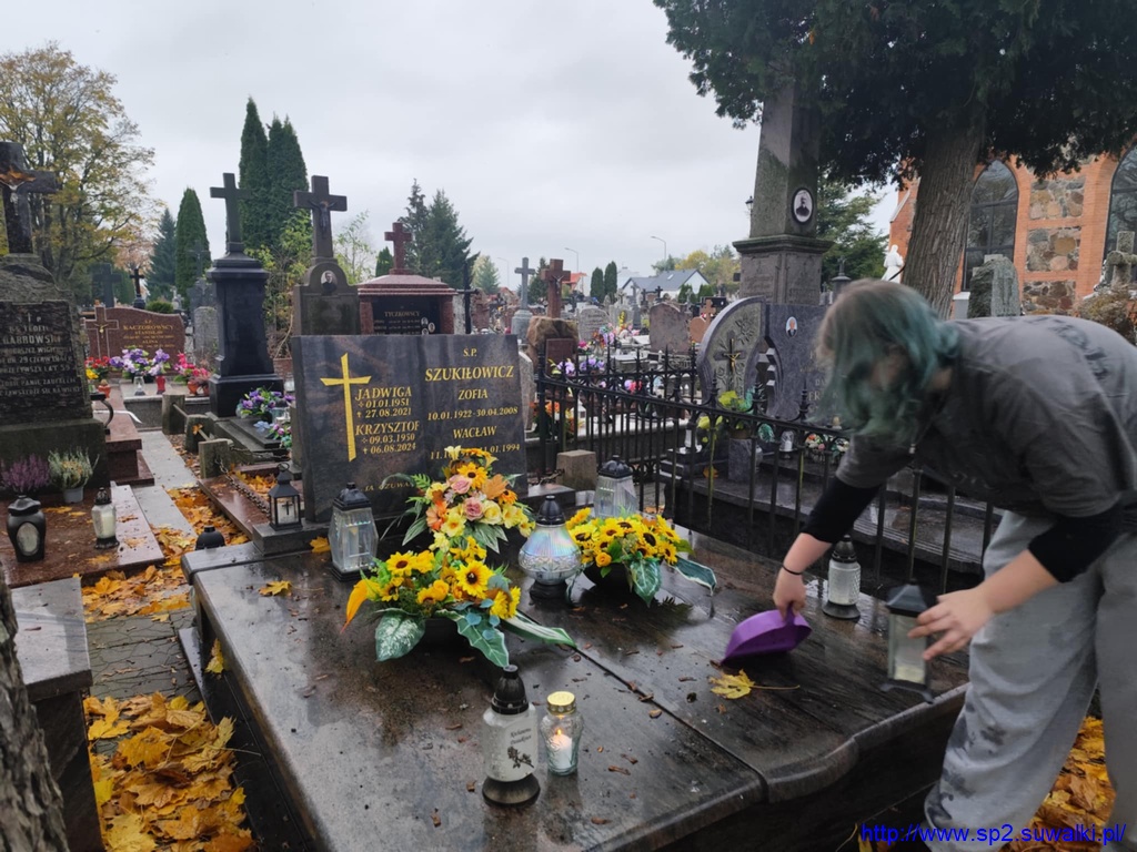 W ostatnich dniach października uczniowie ze Szkolnego Klubu Wolontariatu udali się na cmentarz przy ulicy Bakałarzewskiej, by pochylić się nad grobami zmarłych nauczycieli SP2 oraz rodziny Szczerbińskich – krewnych patronki naszej szkoły.