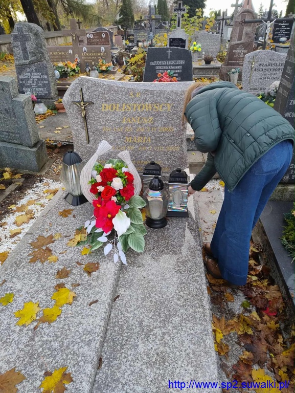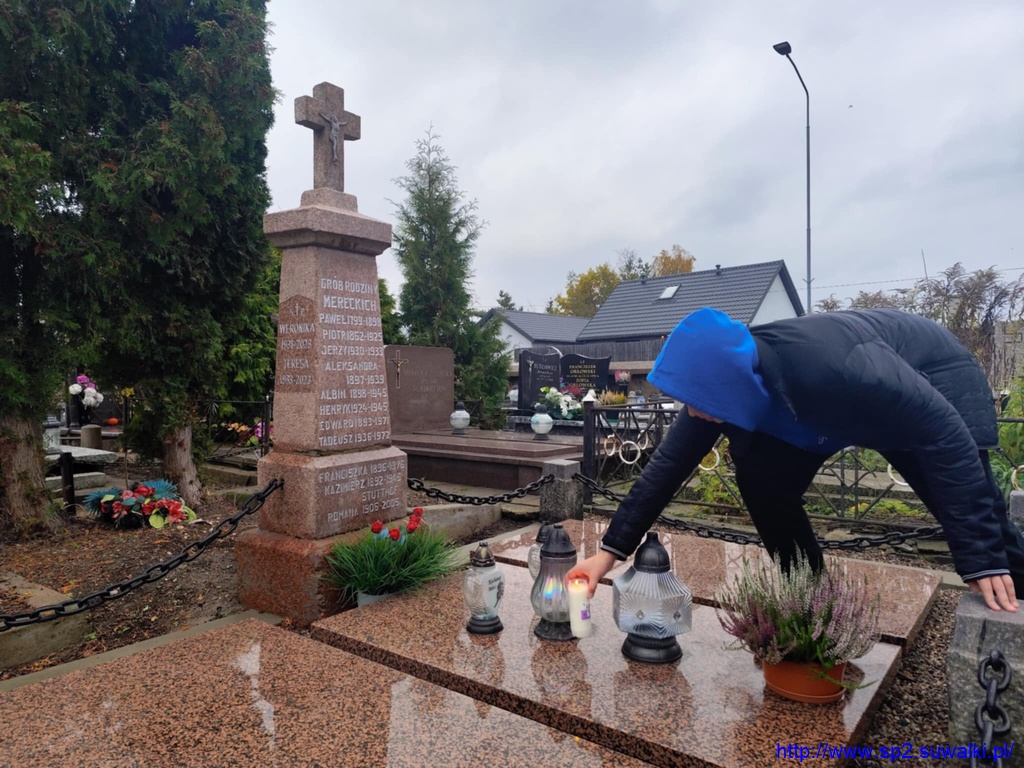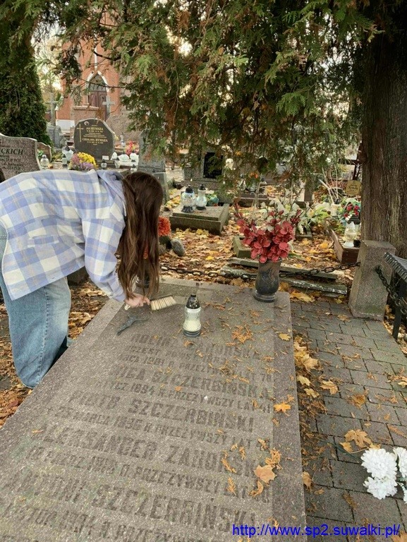 W ostatnich dniach października uczniowie ze Szkolnego Klubu Wolontariatu udali się na cmentarz przy ulicy Bakałarzewskiej, by pochylić się nad grobami zmarłych nauczycieli SP2 oraz rodziny Szczerbińskich – krewnych patronki naszej szkoły.