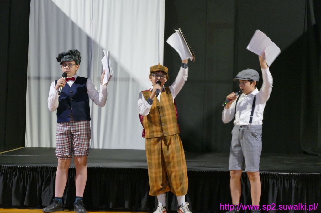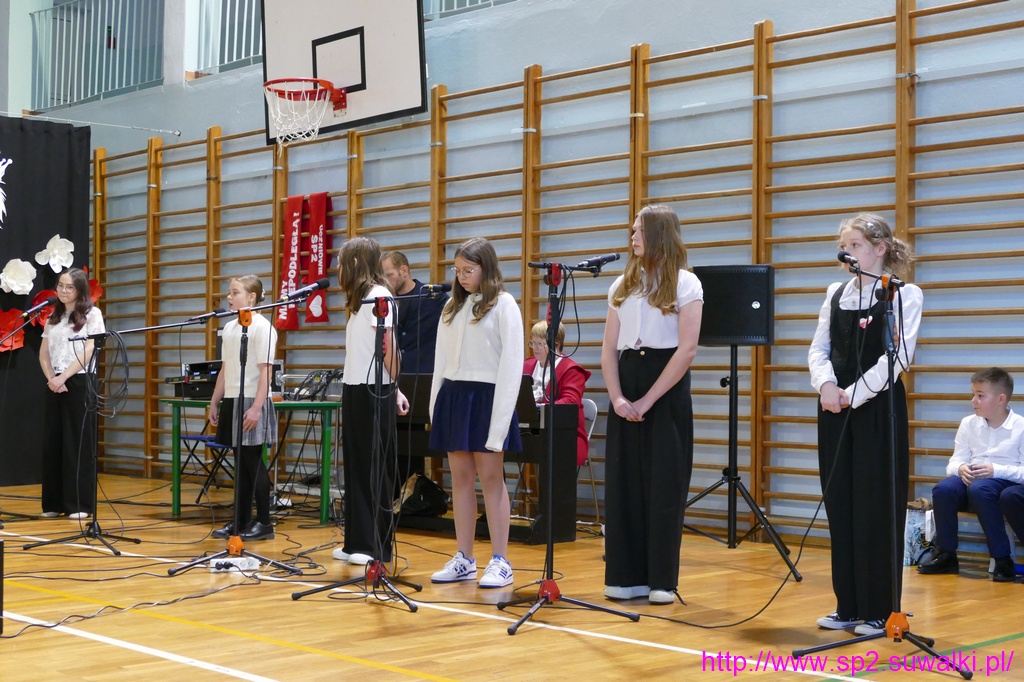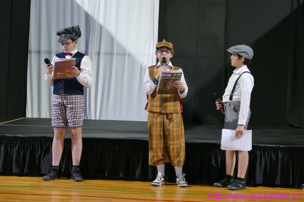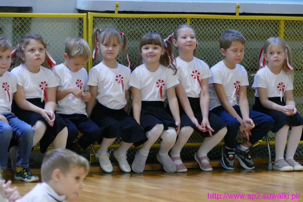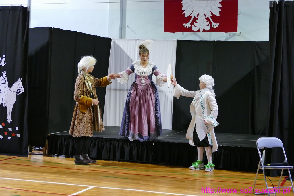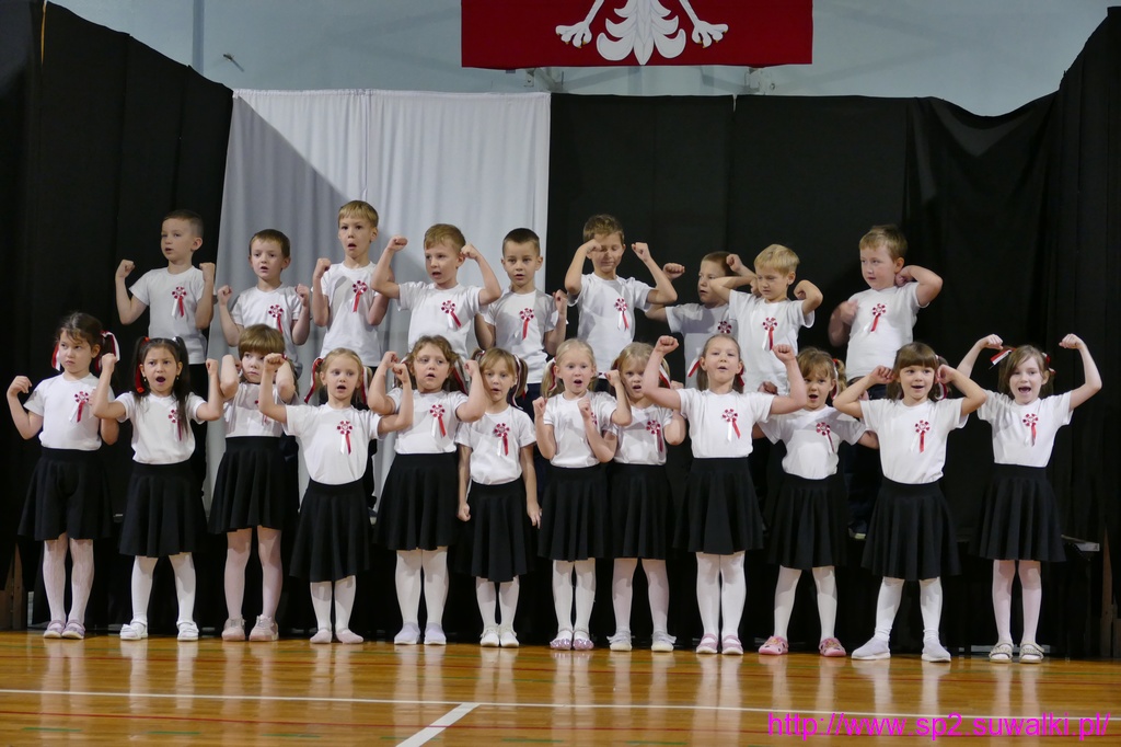 Młodzi aktorzy w historycznych strojach przypomnieli widzom dramatyczne momenty utraty niepodległości, walki o wolność i nadziei na odrodzenie państwa. Całość wzbogacona została pieśniami wykonywanymi przez szkolny chór pod kierunkiem pani Anny Czapli. Elementem szczególnym montażu była projekcja fragmentu filmu „Animowana historia Polski”, który w atrakcyjnej, nowoczesnej formie ukazał losy kraju od średniowiecza po czasy rozbiorów. Całość dopełniła dekoracja wykonana przez panie: Ewę Szczesną –Wasilewską, Ewę Górską i Justynę Różyńską.