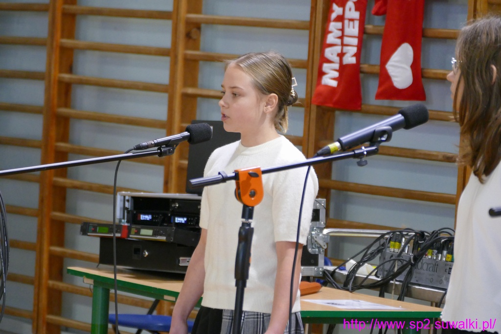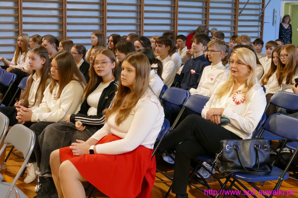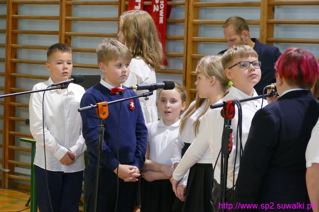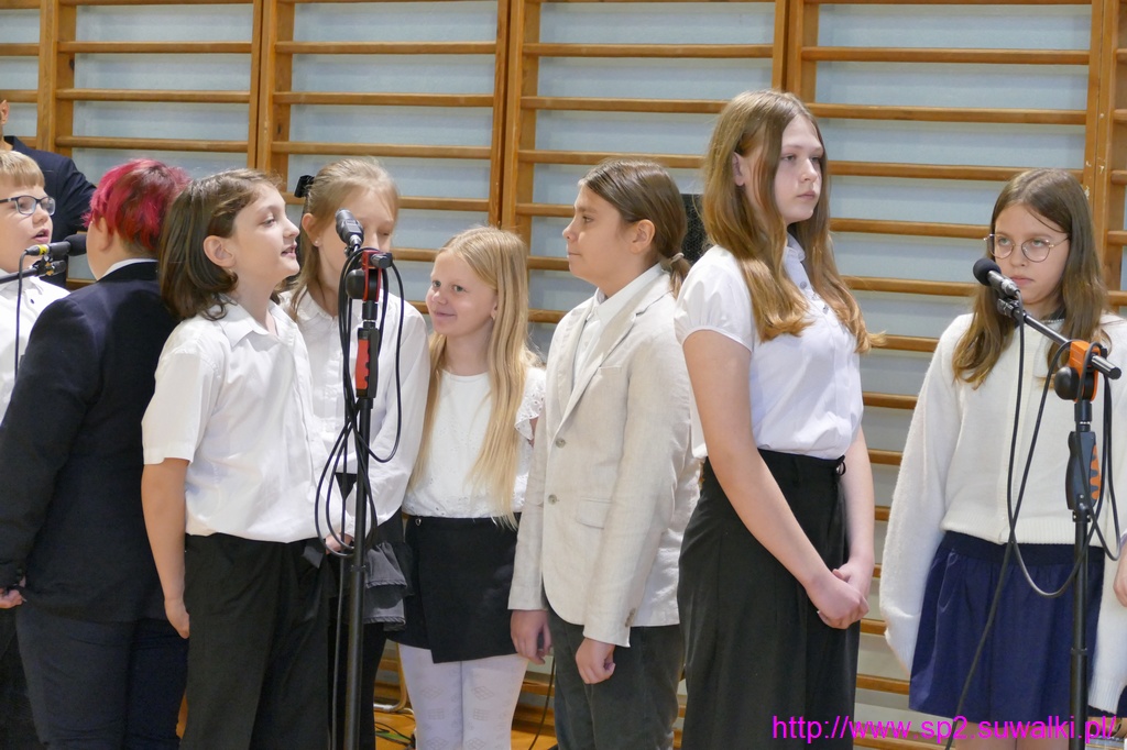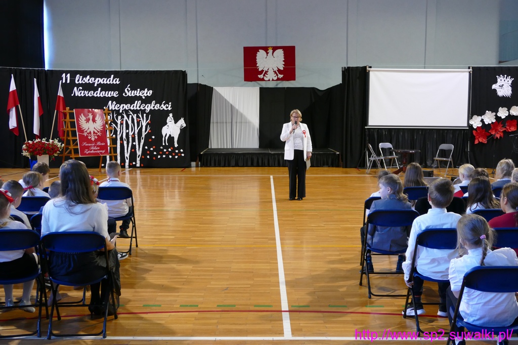 Na początku uroczystości głos zabrała pani dyrektor Ewa Brzozowska, która w przemówieniu podkreśliła znaczenie współczesnego patriotyzmu. Mówiła o tym, że dziś bycie patriotą to nie tylko pamięć o historii, ale także szacunek do drugiego człowieka, troska o język ojczysty, dbałość o środowisko i odpowiedzialność za wspólne dobro.