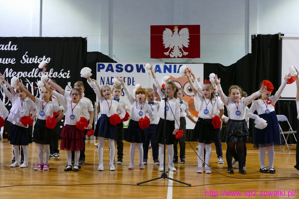 Przed uroczystym aktem pasowania dzieci udowodniły, że znają zasady bezpieczeństwa na drodze, potrafią pięknie śpiewać i recytować oraz kochają swoją ojczyznę. Zgromadzeni rodzice i nauczyciele nie mieli wątpliwości, że pierwszaki są gotowe, by rozpocząć swą szkolną przygodę. Dzieci zostały pasowane na uczniów przez panią dyrektor Ewę Brzozowską, panią wicedyrektor Wandę Szczesną oraz panią Dorotę Sidorowicz - Naczelnik Wydziału Oświaty i Wychowania Urzędu Miejskiego w Suwałkach.