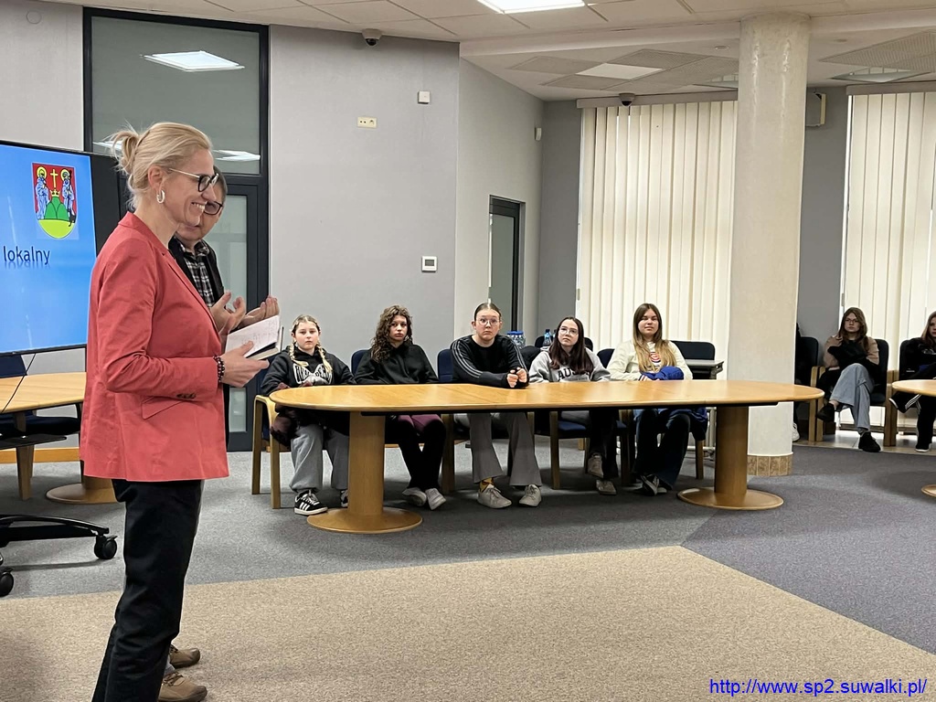 18 listopada uczniowie klas językowych, 7a i 8a, wraz ze swoimi wychowawczyniami udali się do Urzędu Miejskiego w Suwałkach, by przyjrzeć się z bliska funkcjonowaniu Rady Miejskiej. Była to bardzo ciekawa lekcja wychowania obywatelskiego.