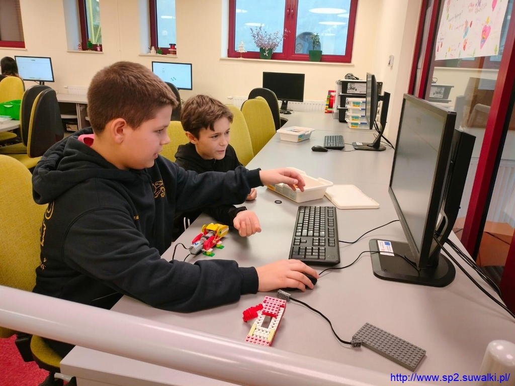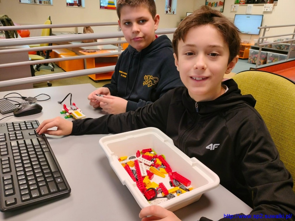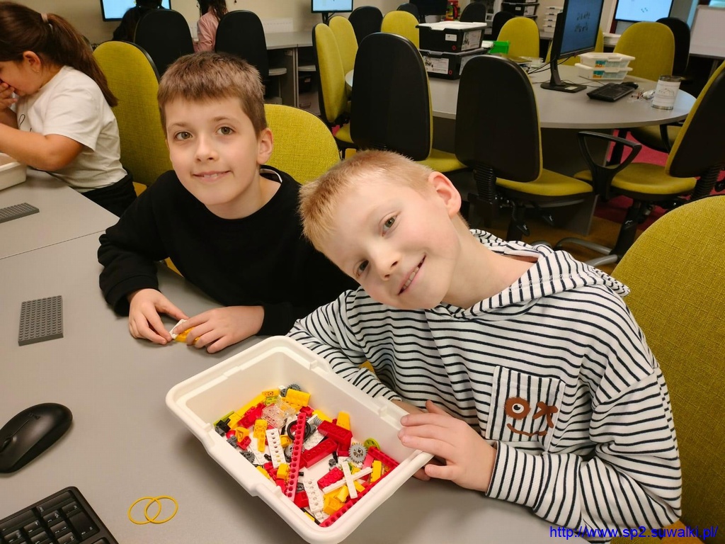 Na miejscu uczniowie pracowali w zespołach. Jedna grupa udała się na zajęcia z robotyki Lego. Dzieci wykonały krokodyla, który po podłączeniu otwierał i zamykał paszczę. Tu trzeba było dokładnie robić krok po kroku to, co było w instruktażu. Wszystkim się udało!