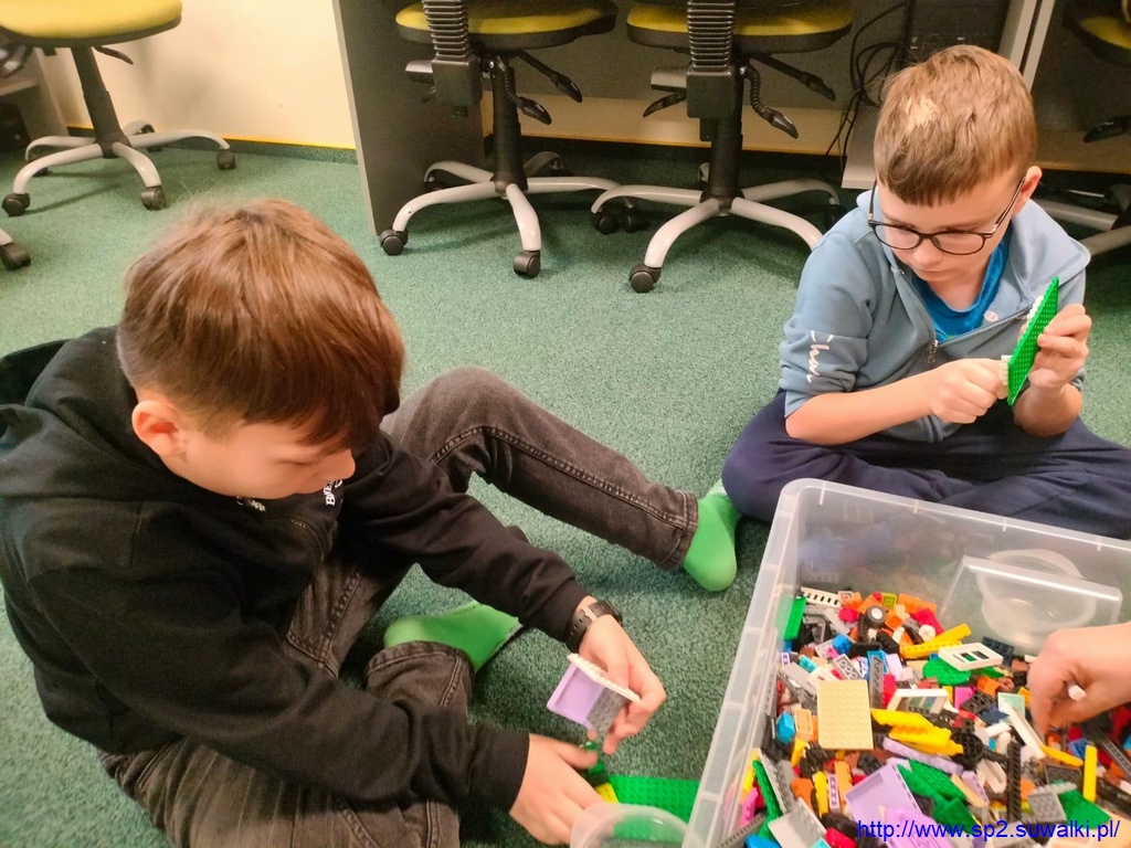 Druga grupa też miała klocki Lego, ale to zadanie polegało na kreatywności i własnym zaangażowaniu. Dzieci, po obejrzeniu prac wykonanych przez uczniów innych szkół, miały zbudować zwierzę, wykorzystując własną wyobraźnię. Im też się udało!